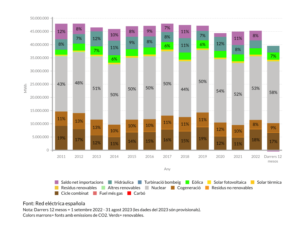 Evolució de la generació d’electricitat a Catalunya