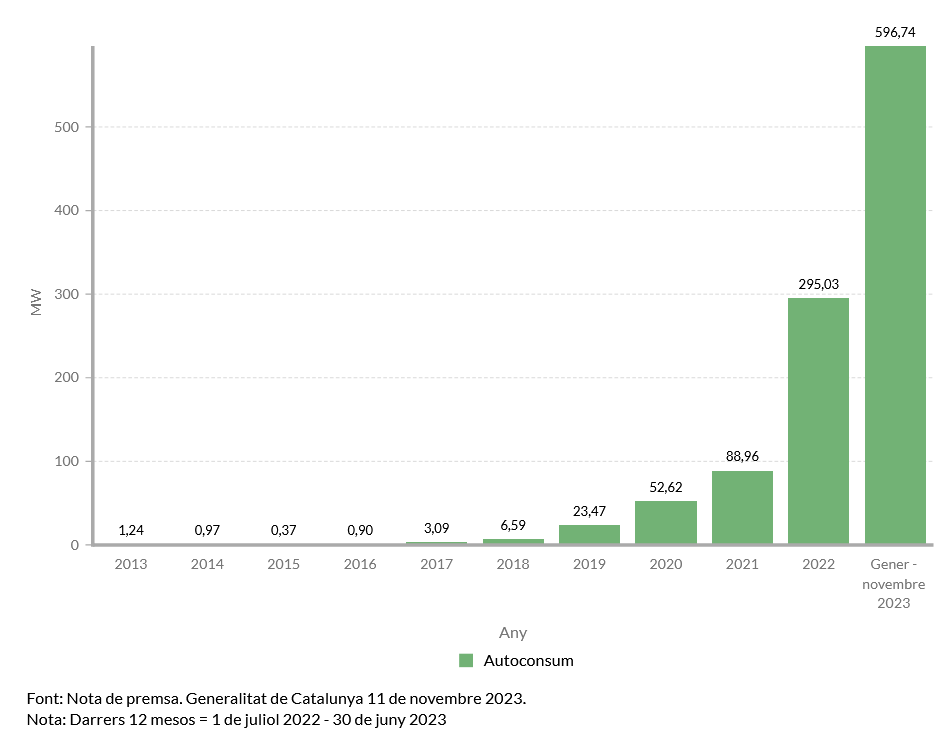 Evolució de la nova potència instal·lada d’autoconsum solar a Catalunya