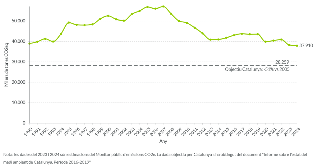 • L’any 2024 les emissions van ser un 6,1 % inferiors a les de l’any 2022 (darrer any amb dades oficials).