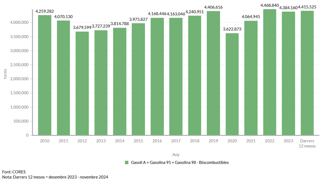 Evolució del consum de combustibles pel transport