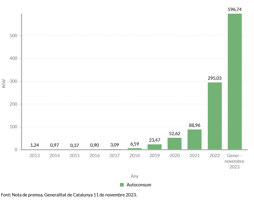 Evolució de la nova potència instal·lada d’autoconsum solar a Catalunya