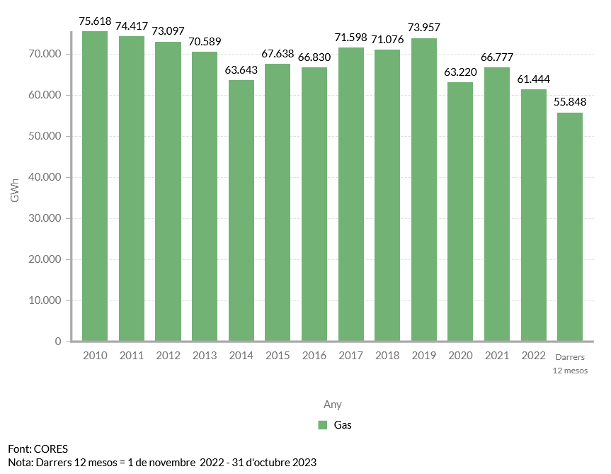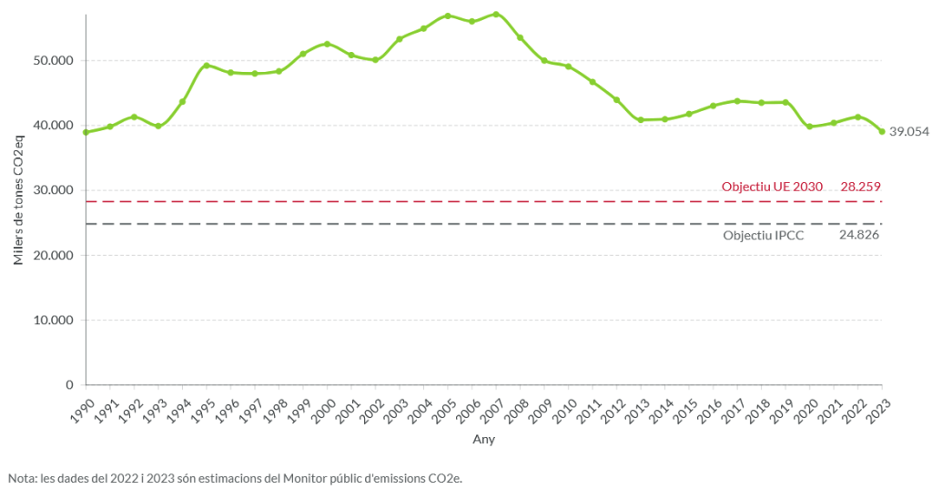 - L’any 2022 les emissions van ser 41.281 milers de tones de CO2e i l’any 2023 39.054 milers de tones de CO2e.