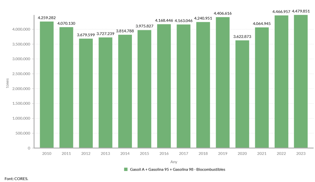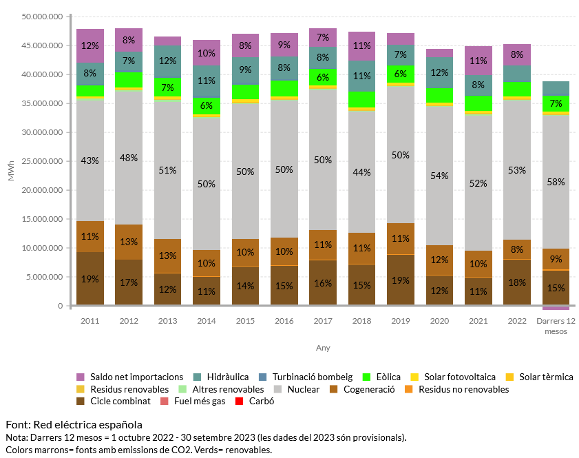 - L’any 2023 les emissions van ser un 3,3 % inferiors a les de l’any 2021 (darrer any amb dades oficials).